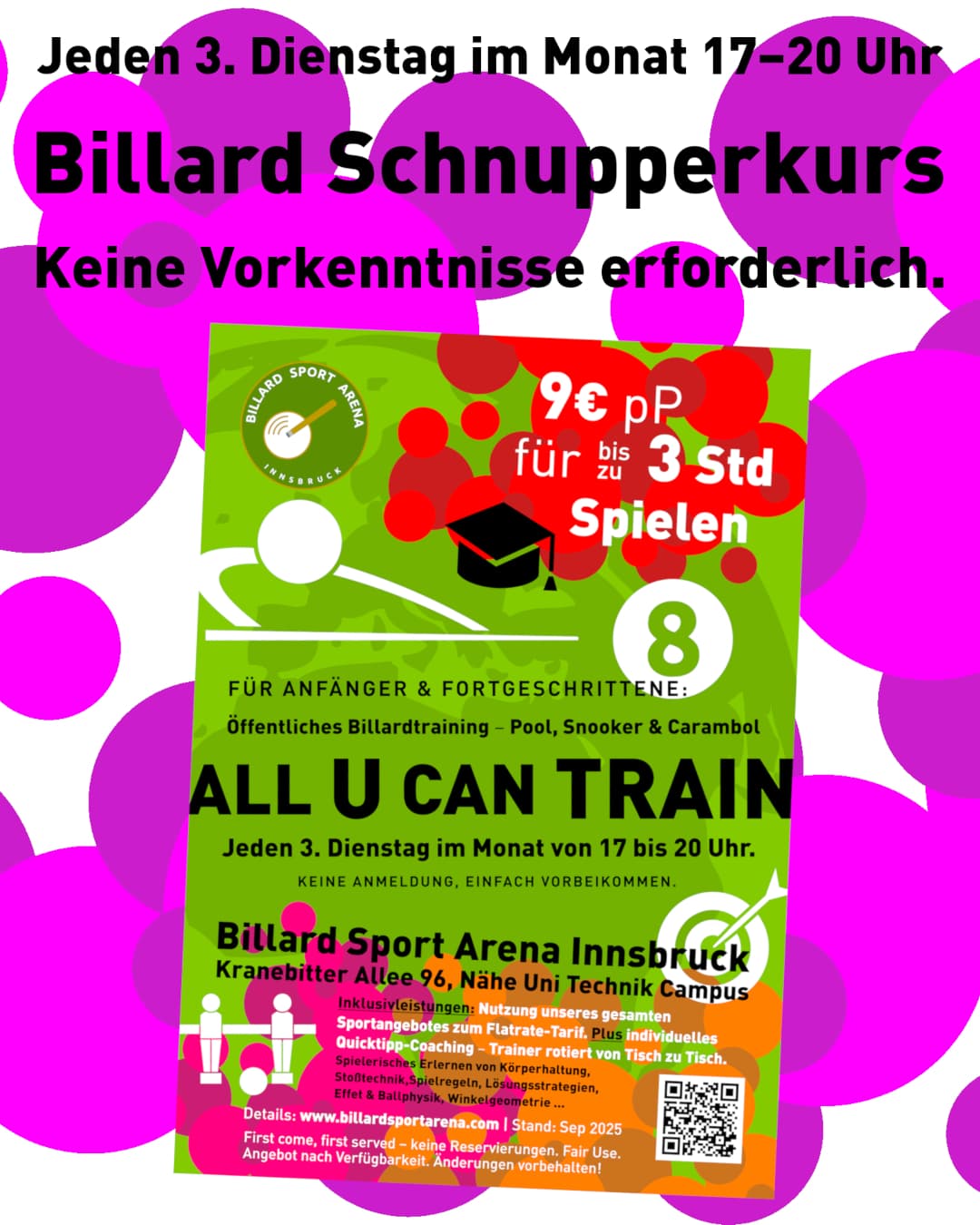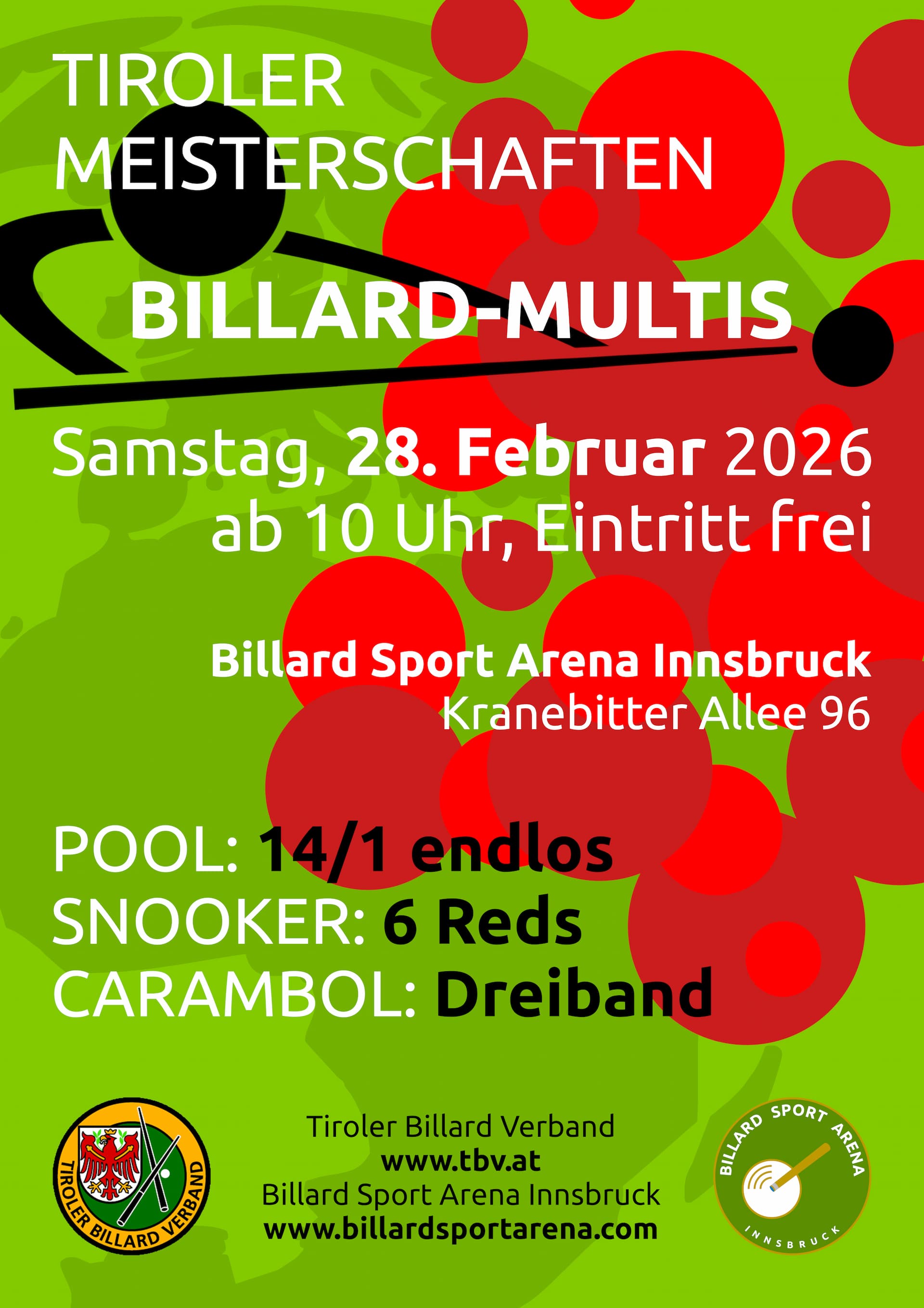 Tiroler Meisterschaften "Billard-Multis" Pool, Snooker & Carambol