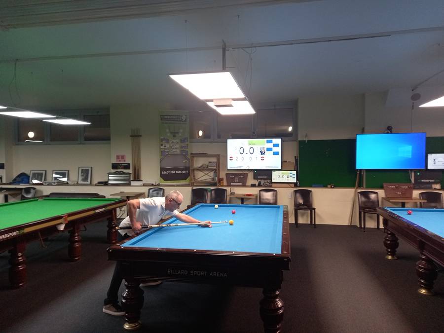 Walter, Kleinbrett Spezialist vom BCA Billard Club Altstadt, wehrte sich mit allen Kräften gegen Sergio Parasiliti und konnte ihm den zweiten Satz mit 60:21 Punkten recht deutlich abluchsen. Letztendlich konnte aber Sergio mit 2:1 Sätzen in das Finale einziehen. Die Zweite Halbfinal-Partie zwischen Harald Saska und Frank Ofner endete 2:0 für Frank Ofner.
